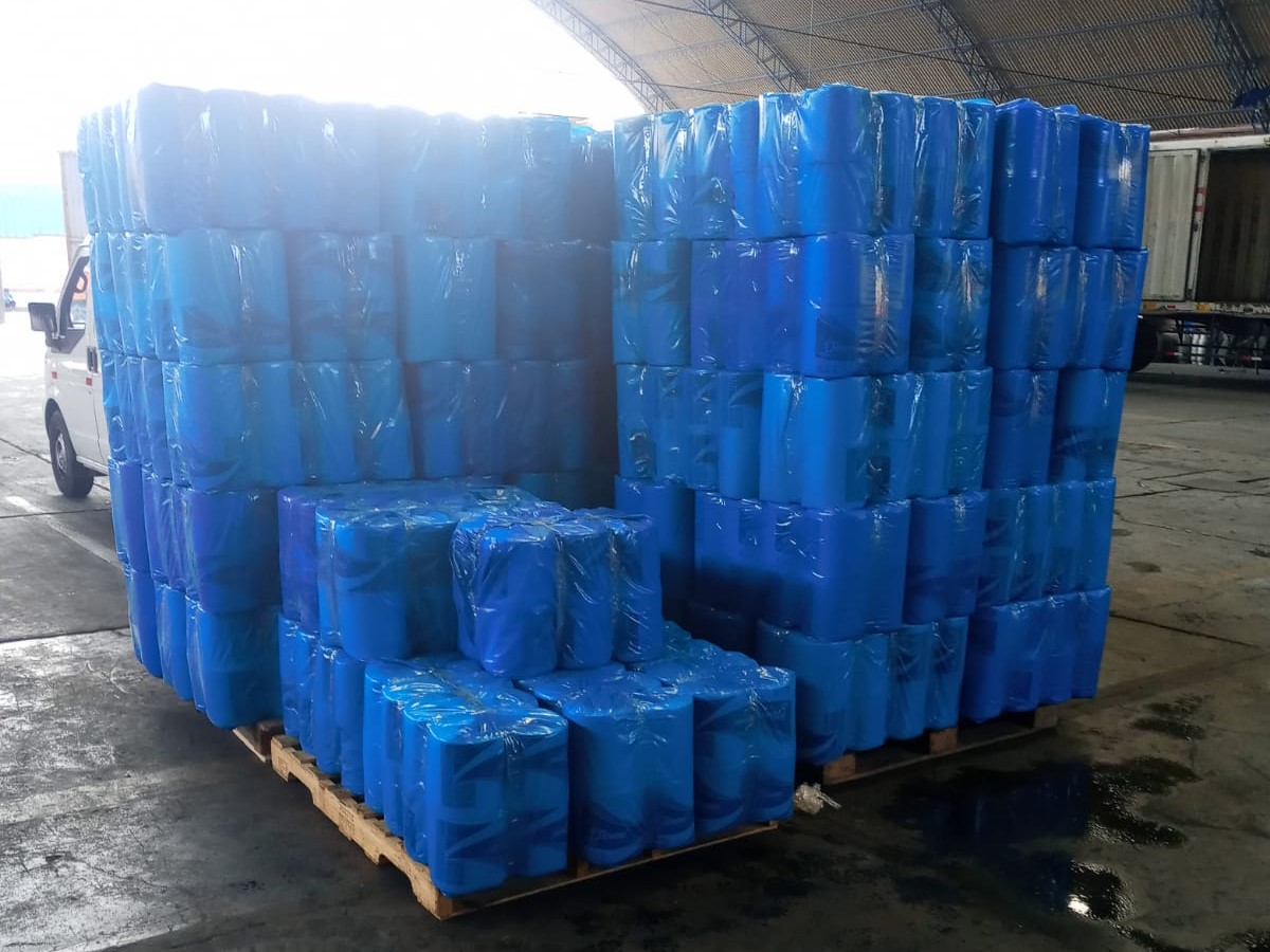 Nosotros preparamos la mercancía en fardo (bolsa color azul), para protegerla de la humedad, de la manipulación y el traslado.